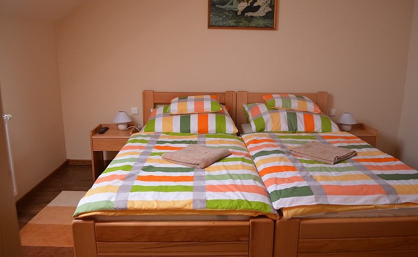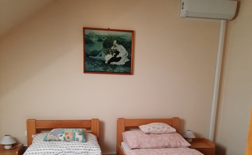 Két különágyas, nem dohányzó kényelmes szoba, saját fürdőszobával, és WC-vel és klímával.